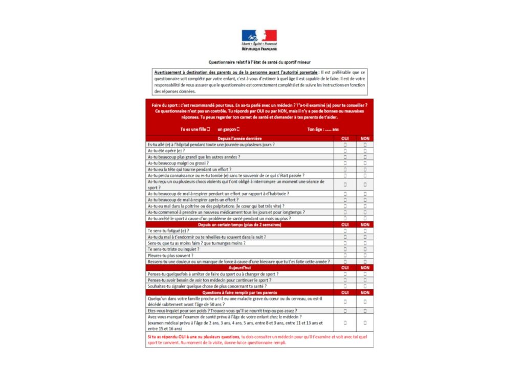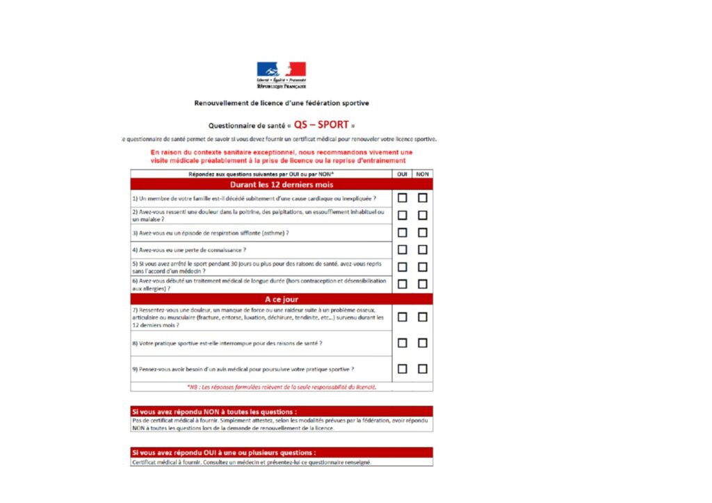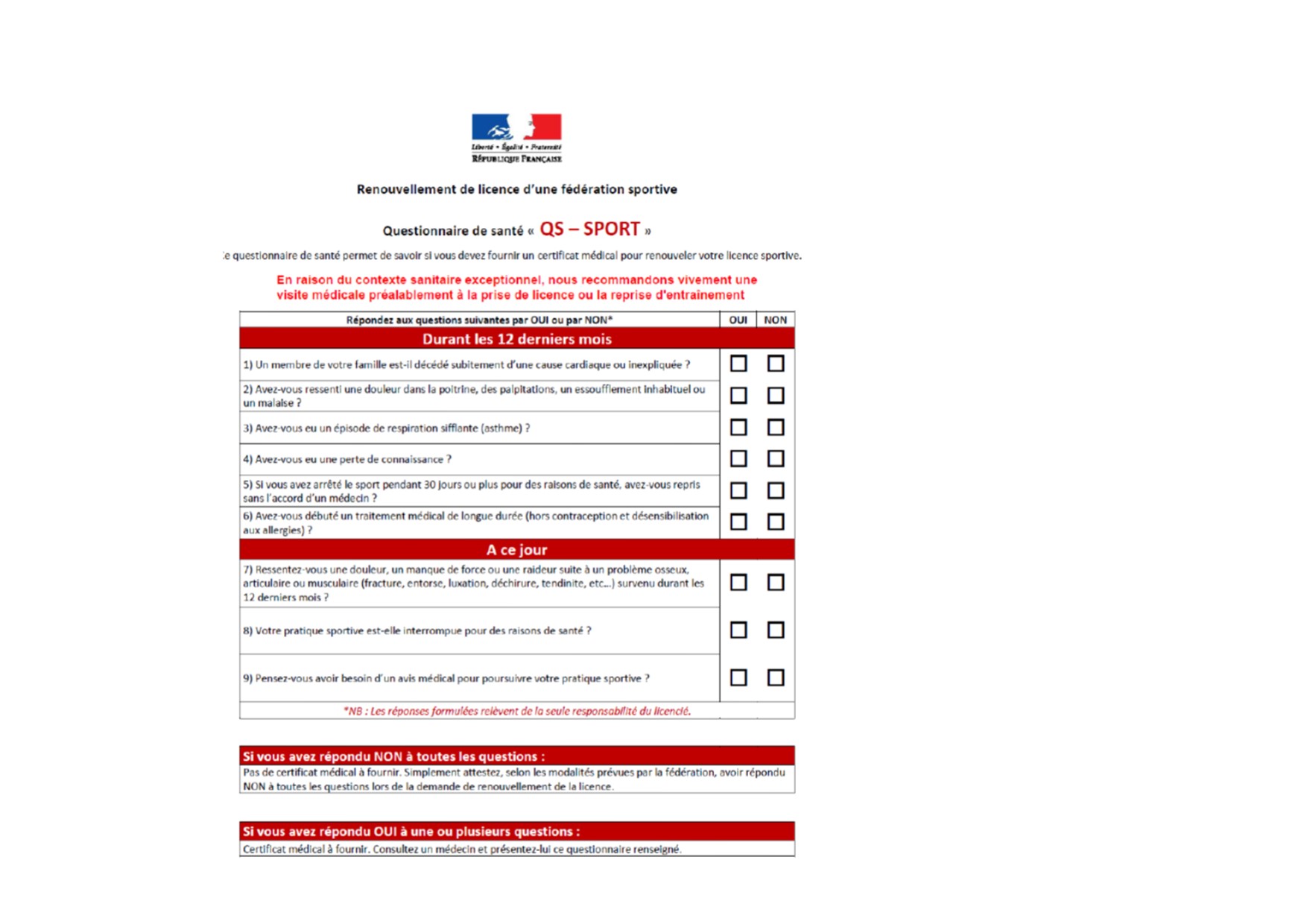 Répondez au questionnaire médical pour pouvoir remplir votre inscription, ce formulaire est personnel, vous n’avez pas à nous le remettre. Il vous sert pour compléter votre bulletin d’inscription et éventuellement nous fournir un certificat médical. INSCRIPTION PAPIER